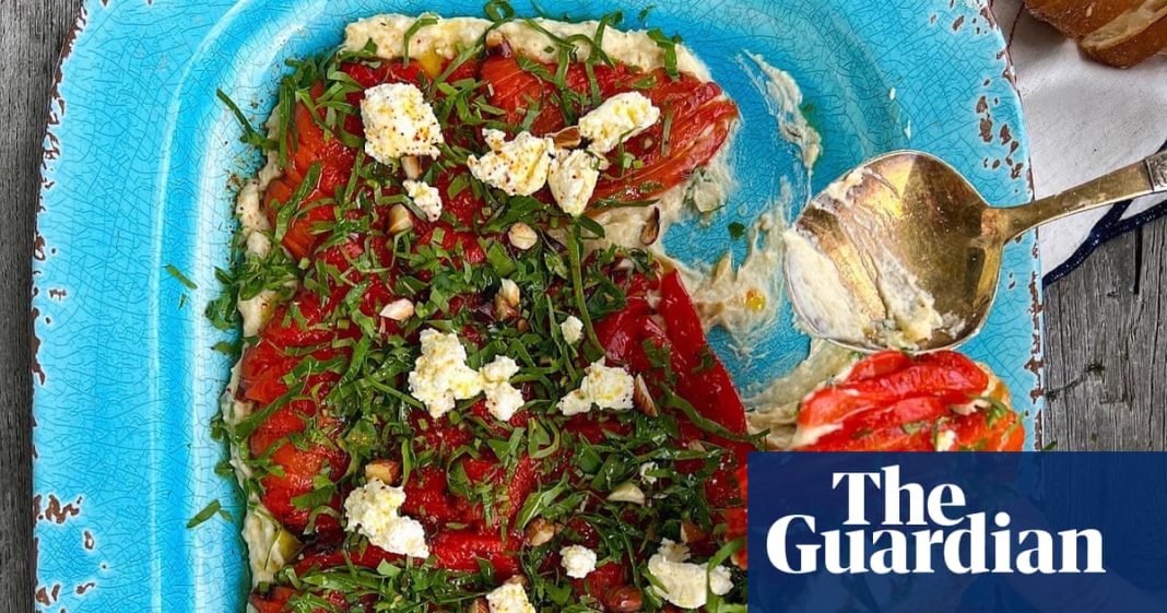 To serve, scoop the whipped papula on to a large platter in undulating waves. Arrange the pepper slices on top in bright red, glossy strips. Dress with the tray juices, sprinkle with a good handful of finely chopped parsley, then blob or crumble on the last of the feta. Sprinkle with some sweet or smoky paprika, a handful of roasted almonds (roughly chopped, flakes or slivers), an extra drizzle of olive oil and a sprinkling of salt flakes. Pop the warm bread nearby and encourage everyone to scoop and dip to their heart’s content.