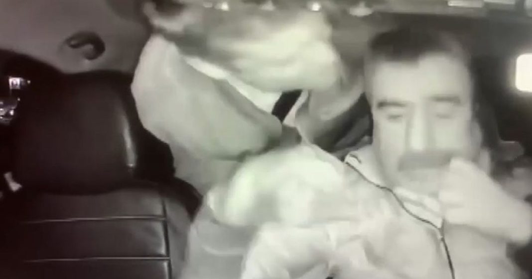 At one point, while the taxi is still in busy traffic, Kitchen seems to claw the struggling driver’s nose towards his jaw. The boxer then seemingly jams his fingers in the cabbie’s eyes, blinding him while they are surrounded by other cars.