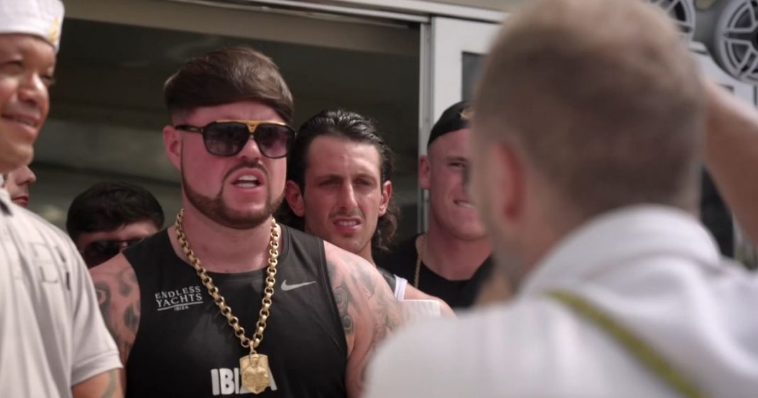 He was quickly dubbed the Ibiza Final Boss by viewers of the brief clip, thanks to his unmistakable look which ticked every box of the stereotypical party-mad Brit on holiday. Immaculately styled hair? Tick. Muscles and ink, absolutely. Massive chain and a bronzed glow? Job done.