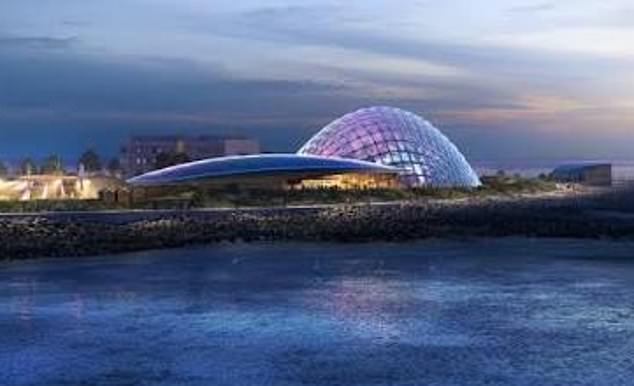 Losing its glow: An artist’s image of Eden Project Morecambe shows it to be half the originally planned size as construction costs have ballooned