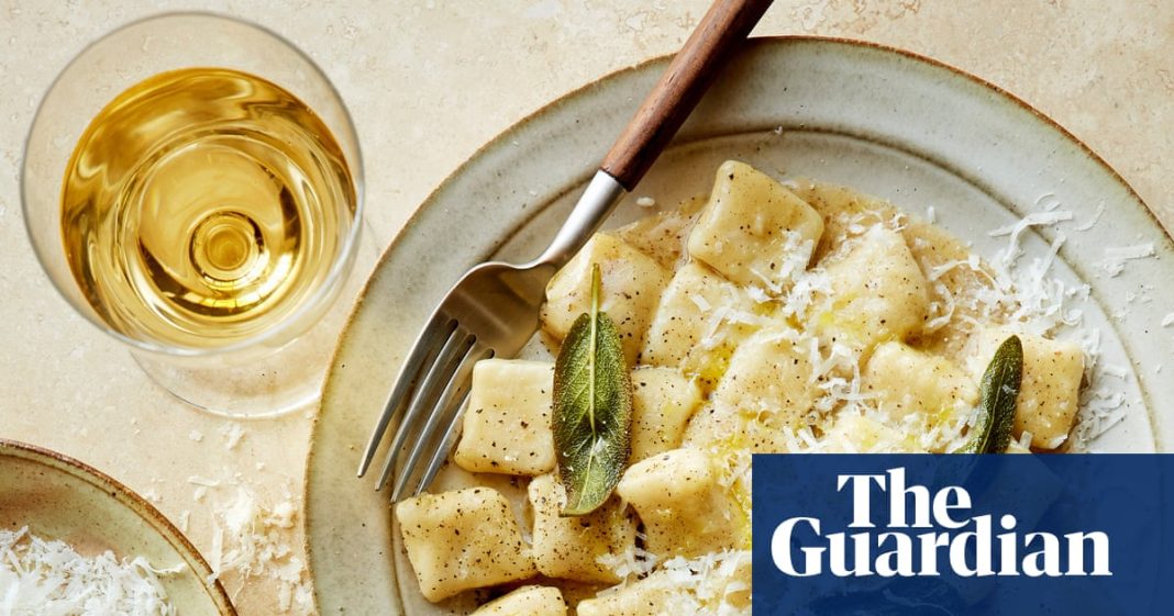 If I’m going to the effort of making jacket potatoes (and by effort I mean putting them in the oven for an hour), I will almost always pop in a few extra spuds to make gnocchi for a later meal. The difference between shop-bought and homemade gnocchi is vast, especially the vac-packed, long-life kind, which are dense and can be heavy. Freshly made gnocchi, with fluffy baked potatoes, however, are light as air, pillowy and silky. If that sounds intimidating, let me reassure you that this recipe is really forgiving, and much easier than making fresh sheet pasta. I love them served simply, as here, with a slightly nutty sage butter and lots of parmesan. The simple sauce lets those gnocchi sing.