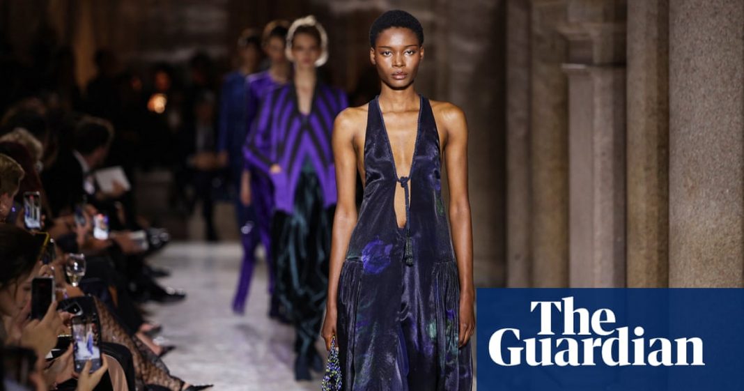The only posthumous change made by Armani’s team was a scaling back of the after show party. Instead of a dancefloor, there were dainty bowls of risotto and a tour of “Milano: Per Amore”, the first fashion exhibition held in the Pinacoteca di Brera, which places 120 Armani “masterpieces”, in the words of the gallery director Angelo Crespi, among the gallery’s Caravaggios and Raphaels, positioned so that they are in dialogue with the art.