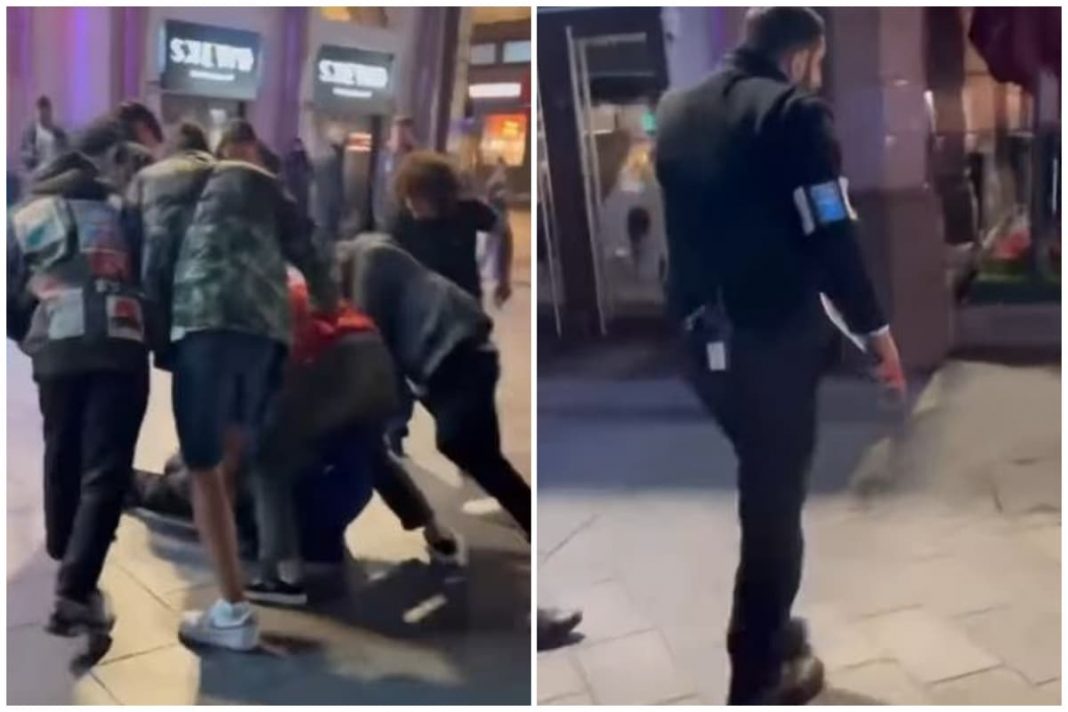 Brave passers-by help detain suspect before hero security guard steps in to disarm him