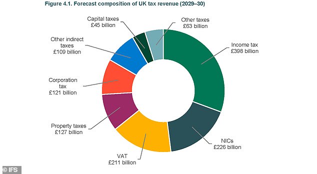 If the Treasury capped relief at the basic rate of 20 per cent, it could raise as much as £22billion in 2029-30, but the IFS says this policy would be ‘unfair and distortionary’ but also be extremely difficult to put into place.