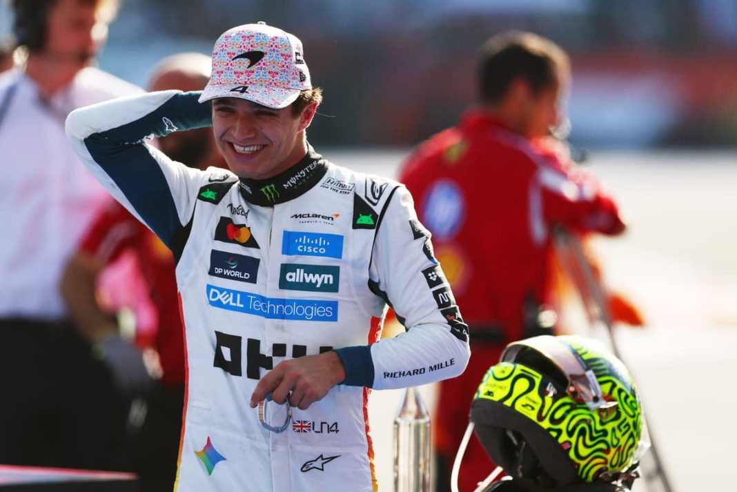 Briton jumps ahead of McLaren team-mate Oscar Piastri by a single point