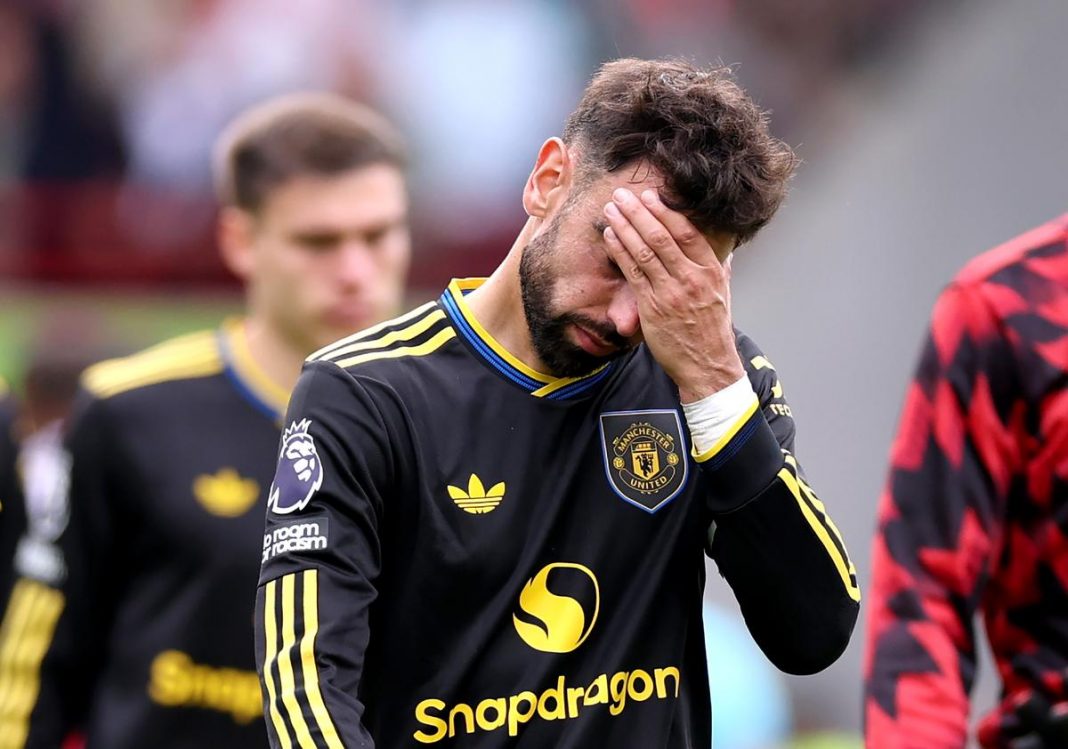 Altay Bayindir 5: Another mixed afternoon for the United goalkeeper. Nothing he could do about Thiago’s opening goal, but got a big hand to the Brazilian’s second effort, which squirmed through him. Made two excellent saves in quick succession to deny Sepp van den Berg and Nathan Collins. Wrong footed by Jensen’s stoppage-time effort.