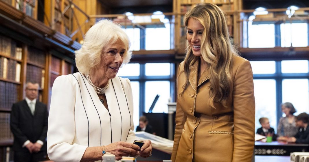 Queen Camilla and U.S. First Lady Melania Trump tour the Royal Library