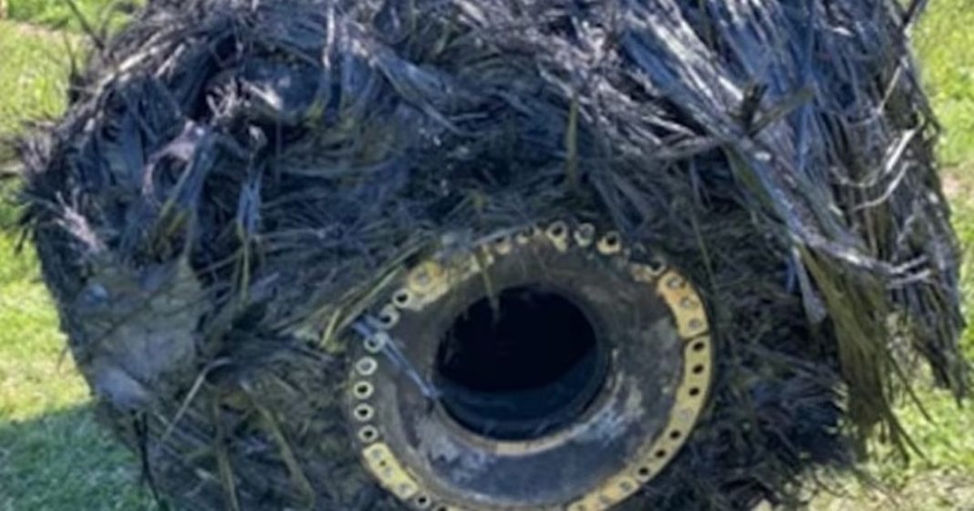 It had a 40cm hole at one end, a valve system at the other and also had an inscription with a serial number. The cylinder was covered in strange black fibres that looked like hair, prompting one social media wag to joke it “looks like a giant wig.”
