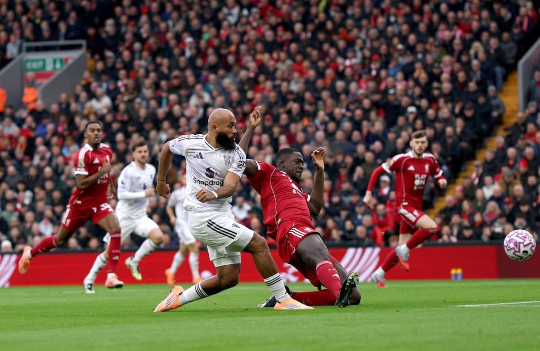 However, Michael Oliver did not stop the game and Mbeumo was allowed to race through and score his third goal in Man Utd colours after joining from Brentford in the summer.