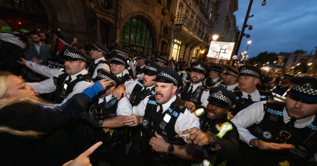 As protesters declined to adhere to the restrictions imposed on their demonstration, police officers were compelled to intervene. The Metropolitan Police described the incident, stating: “Regrettably, a significant number of those present were intent on breaching the conditions, leading to clashes with officers who moved in to enforce them.”