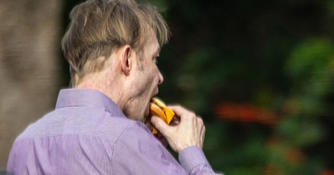 Sporting an electronic tag on his ankle, he headed straight to a branch of the American food chain, where he was spotted tucking into a cheeseburger, chicken nuggets, a hot drink and smoking a cigarette.
