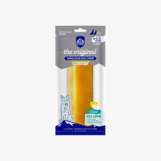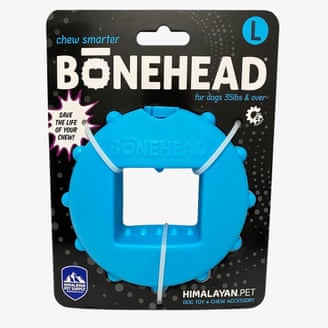 They’re also not the kind of thing to leave your dog alone with, since they can break into small pieces. Pro tip: when your dog wears a chew down to a small nub, throw it in the microwave. In just a few seconds, it’ll inflate like a high-school science experiment. Let it cool down for 30 minutes or so, and then watch your pups go wild. Himalayan also makes an accessory called a Bonehead that makes the shrinking chew harder to swallow.