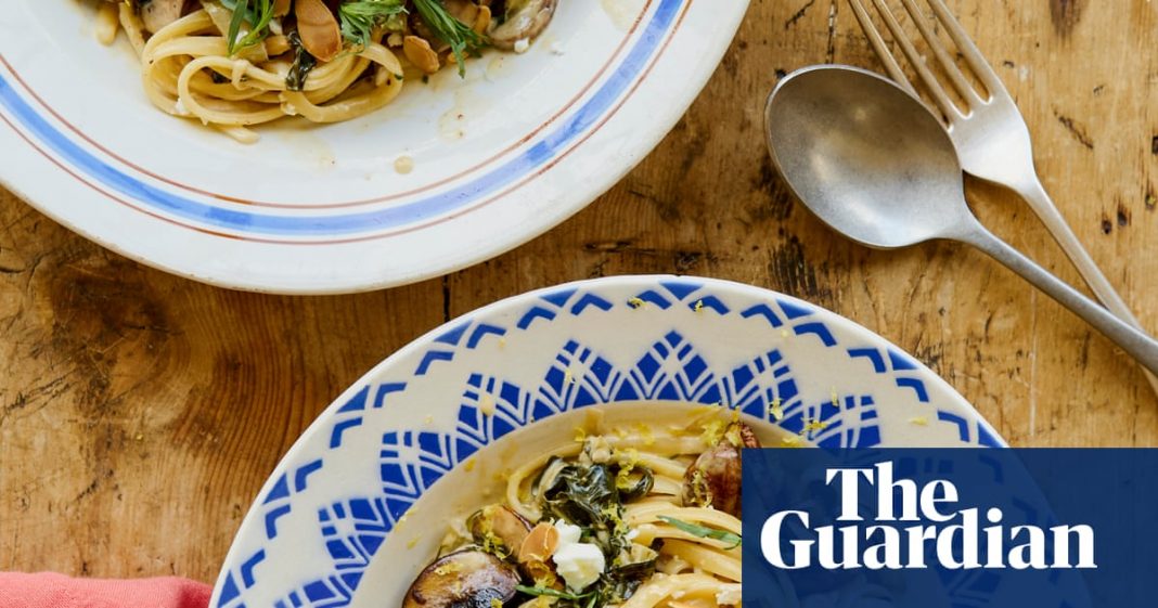 Thomasina Miers’ recipes for mushroom linguine with chard, and poached pears with spiced hazelnut crumble | Food