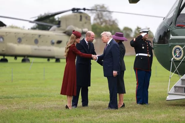 Trump salutes William and Kate as he arrives at Windsor to US national anthem